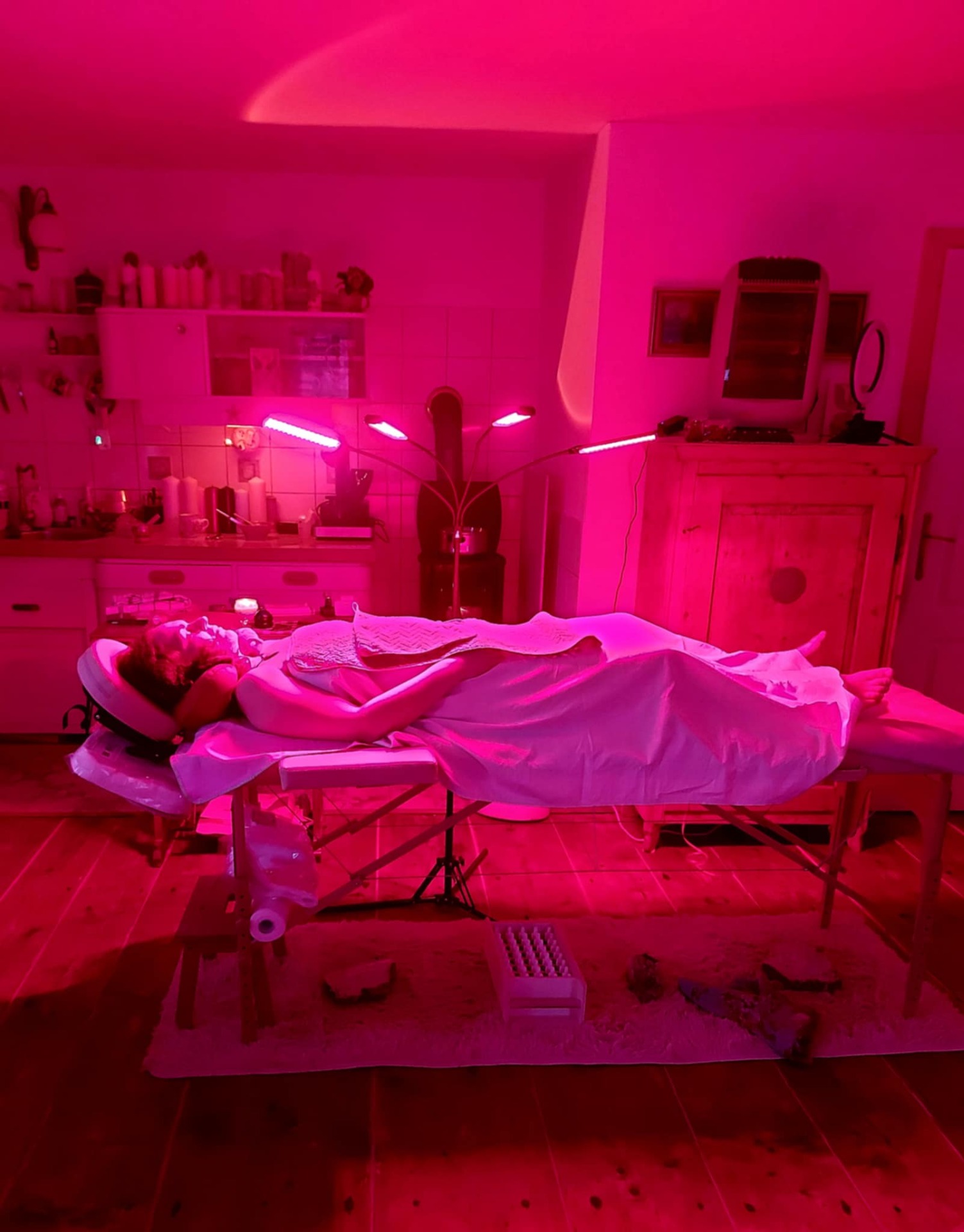 Jemná relaxace, za účelem snížení stresu, která propojuje vědomý dotek, dech, červené světlo a hluboké uvolnění. Prostor, kde se tělo uvolní, mysl ztiší a duše se opětovně nadechne.