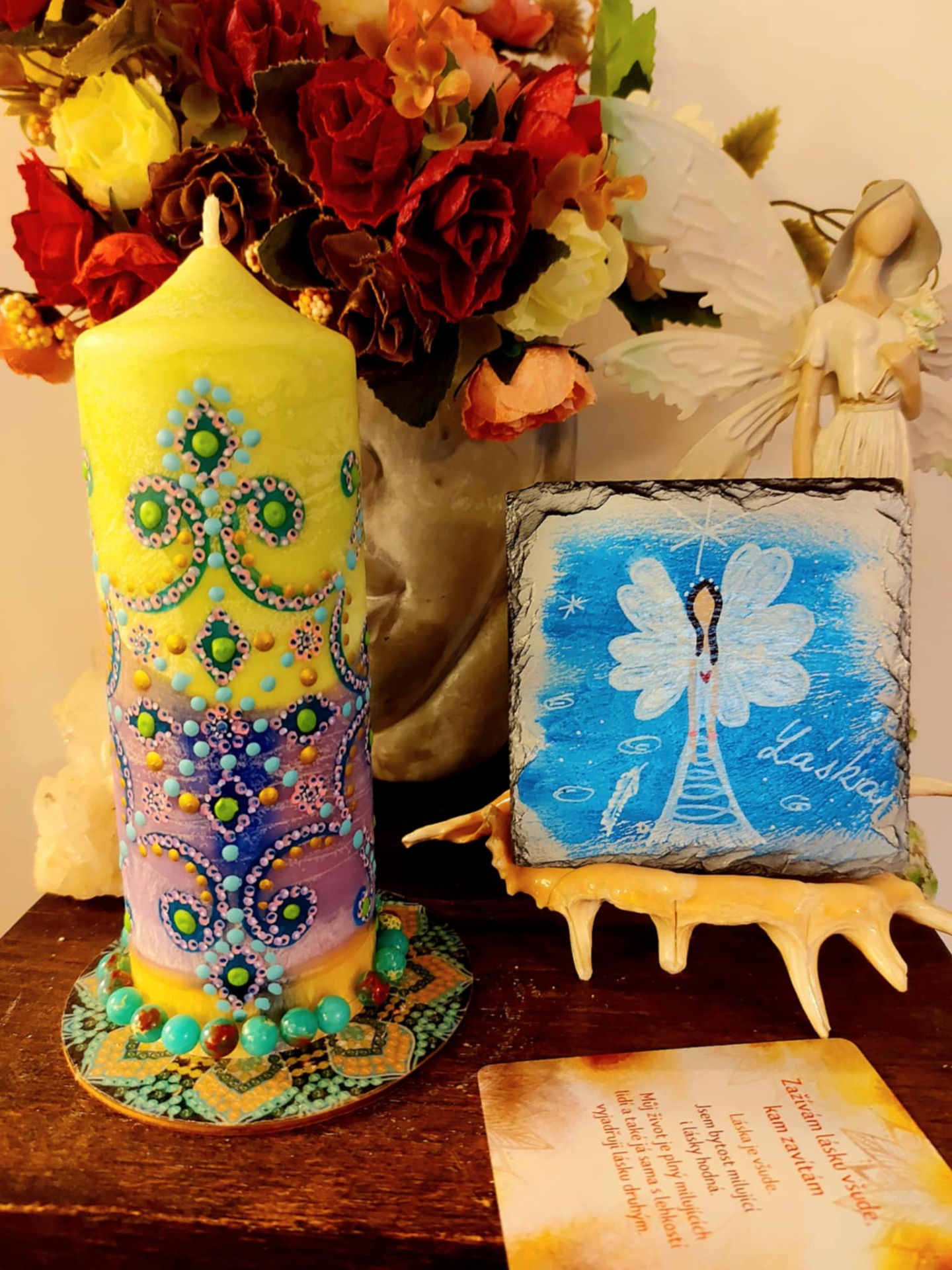 Každá svíčka je originál. Fotografie  zkresluje, odstín se může malinko lišit od skutečnosti. V současné době již tvořím vždy jen JEDEN KUS, nevkládejte prosím do košíku více kusů. Děkuji za pochopení. V tomto krámku si kupujete víc než svíčku. Každý gram je protkán láskou, kouskem mého srdce i duše, a hodinami práce  s energiemi a s fantazií. Svíčka může být nádherným sdělením, jak moc vám na druhém záleží. Dárek z lásky sobě, dárek pro jiné.....