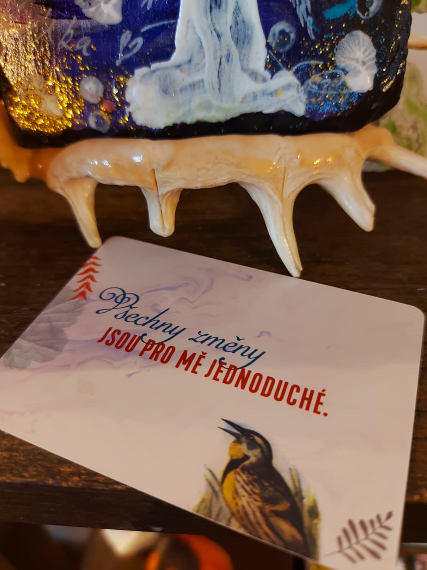 Afirmace: V každém kroku se loučím s minulostí. Existuje pouze přítomný okamžik – otevřený portál k mé zářivé budoucnosti. Jsem nevinná, důvěřující, v harmonii s proudem života. Skáču do neznáma, které rezonuje s mou duší. Uzdravuji pocit nebezpečí a vím, co je pro mě dobré. Děkuji.