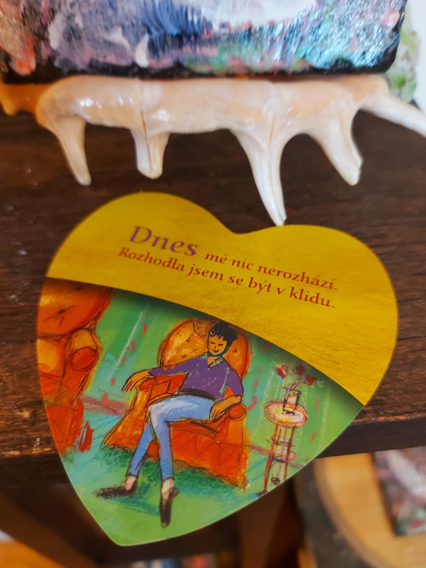Afirmace : S každým nádechem vchází do mého nitra klid. S každým výdechem pouštím napětí, které mě tíží. Dovoluji si úlevu. Dovoluji si spočinout v míru.