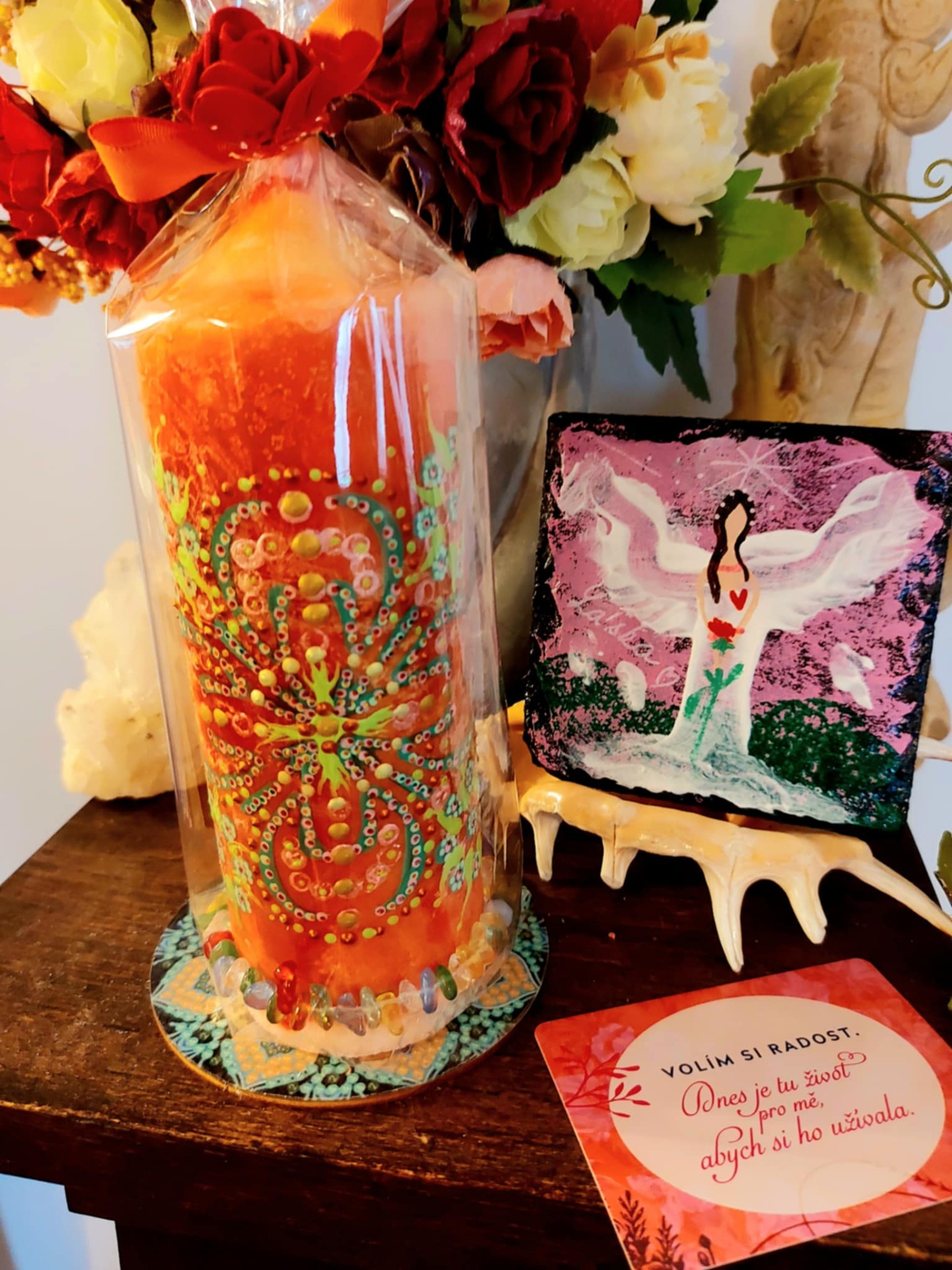 Rituál s vizualizací - Zapal svíčku a posaď se před ni. Vnímej, jak se plameny radosti odrážejí ve tvém srdci. Představ si, že tvé tělo je nádoba. S každým nádechem do ní proudí světlo – jiskřivé, hravé, zářivé. Vše těžké se rozpouští. V duchu si dovol zavolat své vnitřní dítě – to, které tančilo, smálo se, hrálo si. Přisedá si vedle tebe a společně hledíte do plamene. Ucítíš, jak radost stoupá od břicha do hrudi a pak se rozlévá do celého prostoru. Jsi jako rozkvetlá zahrada plná barev. Poděkuj sobě i svému vnitřnímu dítěti za to, že dovoluješ radosti růst. Nech plamen ještě chvíli hořet, dokud pocit vnitřní lehkosti nezakoření.