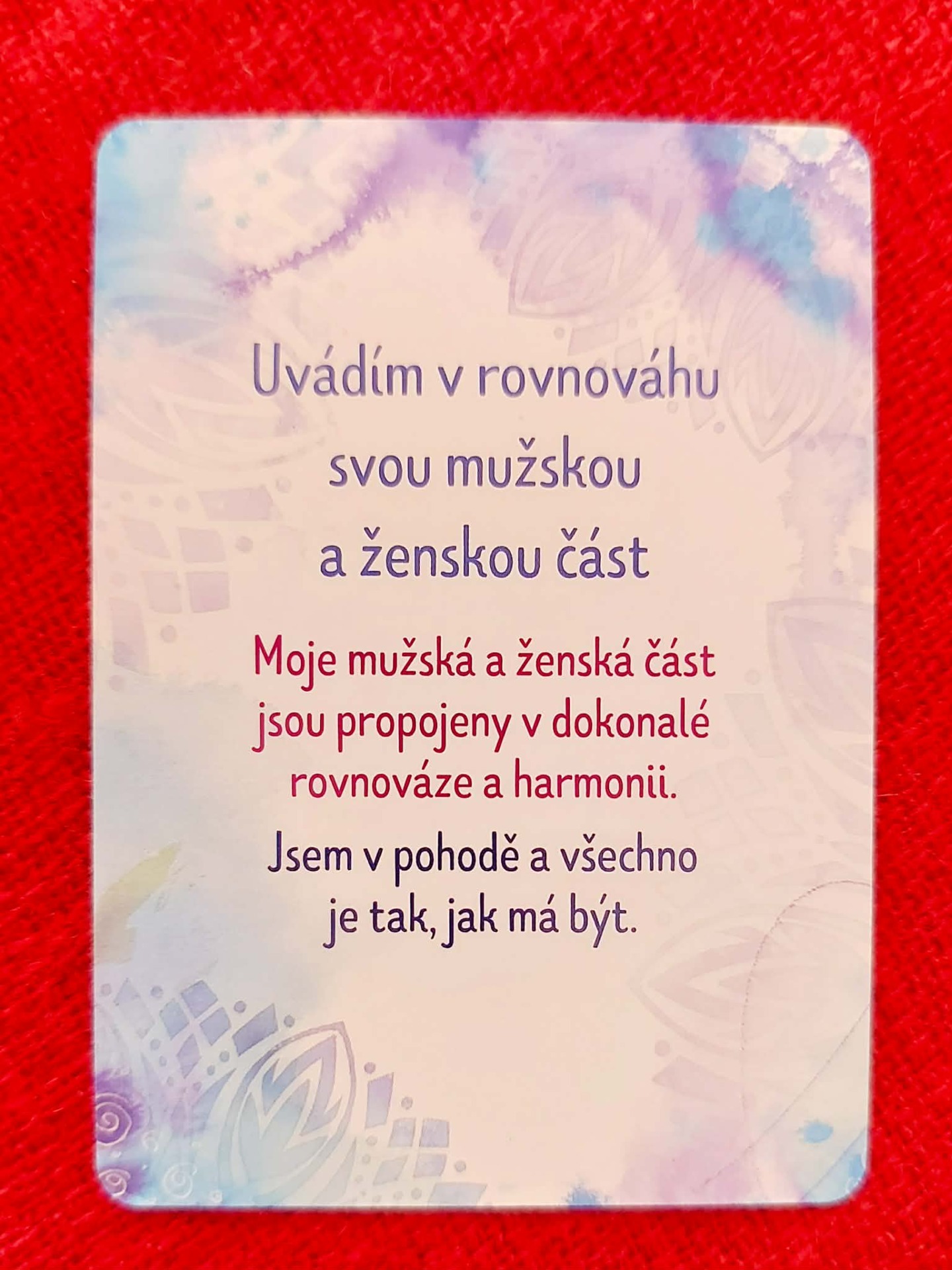 Afirmace: Přijímám sebe ve všech podobách. Má zranění i dary tvoří celek. Každá moje část má své místo. Jsem celistvá. Jsem doma.
