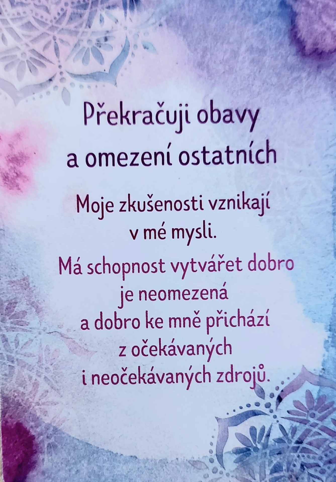 Afirmace Stoupám vzhůru s lehkostí a důvěrou. Má duše zná směr a má křídla se otevírají. Každý krok mě přibližuje k mé pravdě. Růst je přirozený pohyb mého bytí. Světlo mě vede, stín mě prohlubuje a já stojím ve své celistvosti.