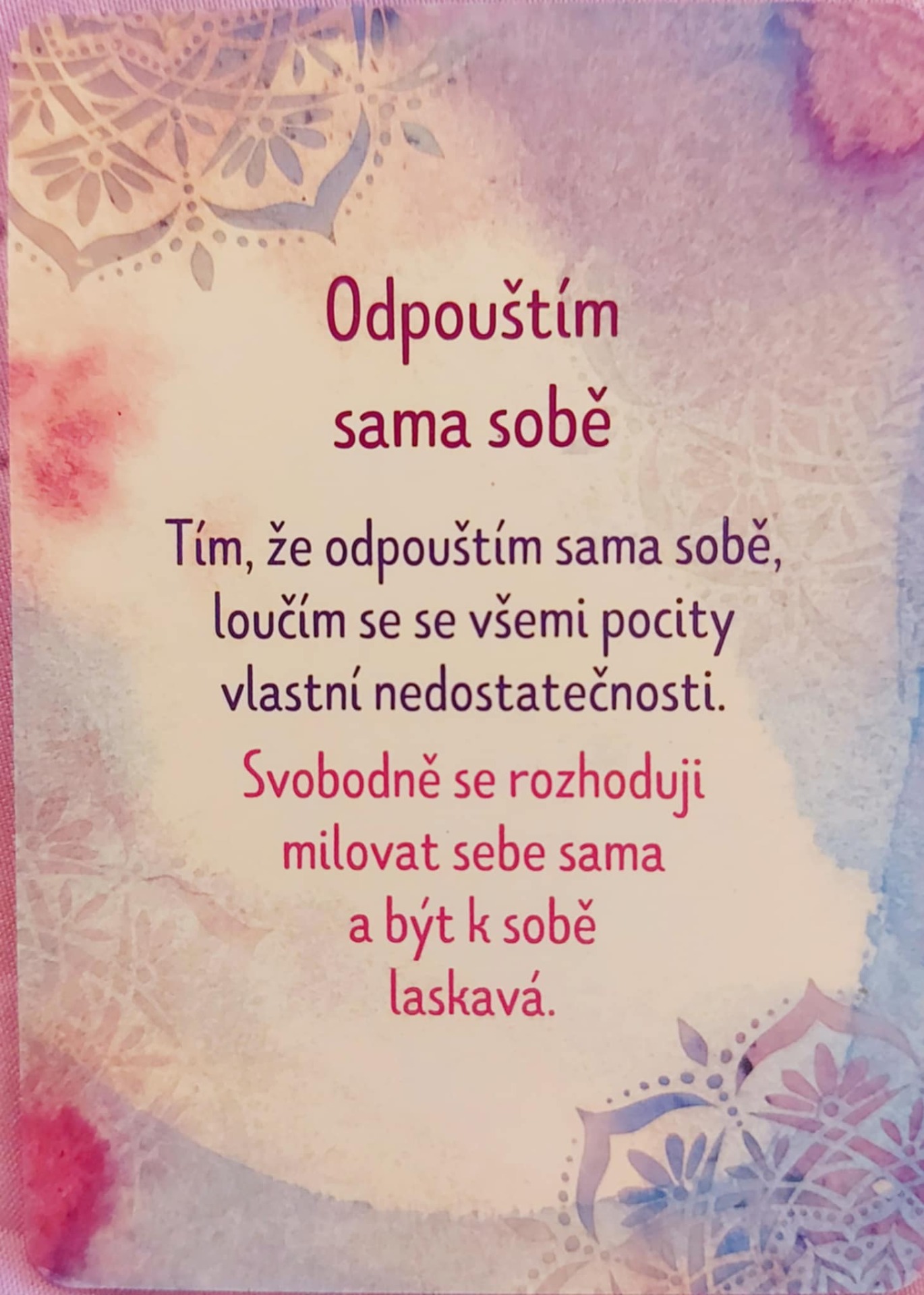 Pomáhá ženě vstoupit do prostoru bez pocitu „nejsem dost“.  Pine (Borovice) Uvolňuje pocit viny a vnitřní sebekritiku. Uvolňuje tendenci brát na sebe odpovědnost za všechno. Centaury (Zeměžluč) Pro ty, které se snadno přizpůsobují a dávají přednost druhým před sebou. Crab Apple (Planá jabloň) Pro pocit „nejsem dost čistá / dost dobrá“. Pomáhá přijmout sebe takovou, jaká jsem. Elm (Jilm) Pro ženy, které jsou silné, ale občas je tíha odpovědnosti přehltí.