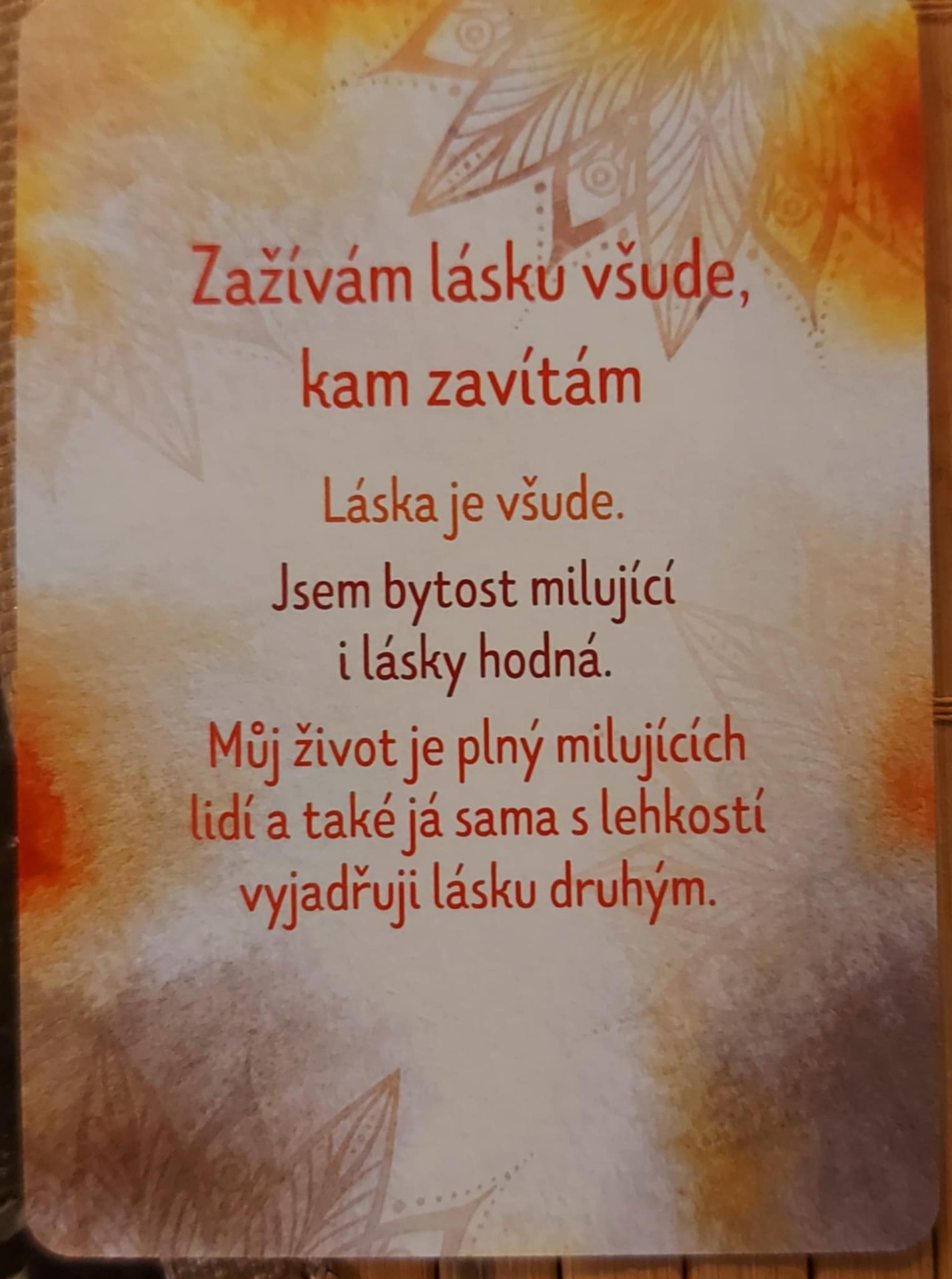 „Jsem láska. A v lásce nacházím svůj smysl. Každý krok, který činím v jejím světle, mě vede k pravdám, které proměňují můj život.“