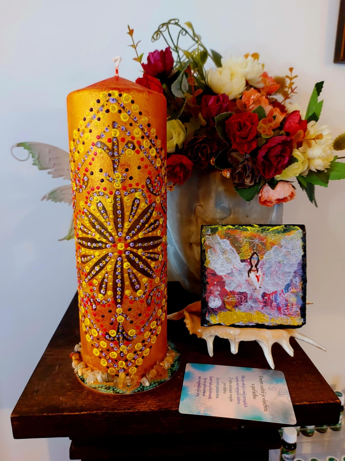 - Tato svíčka je rezonanční objekt, laděna na vnímavost, přítomnost a vědomý kontakt. Vznikla jako otevřené pole, které se propojuje s vědomím člověka, jenž s ní pracuje.