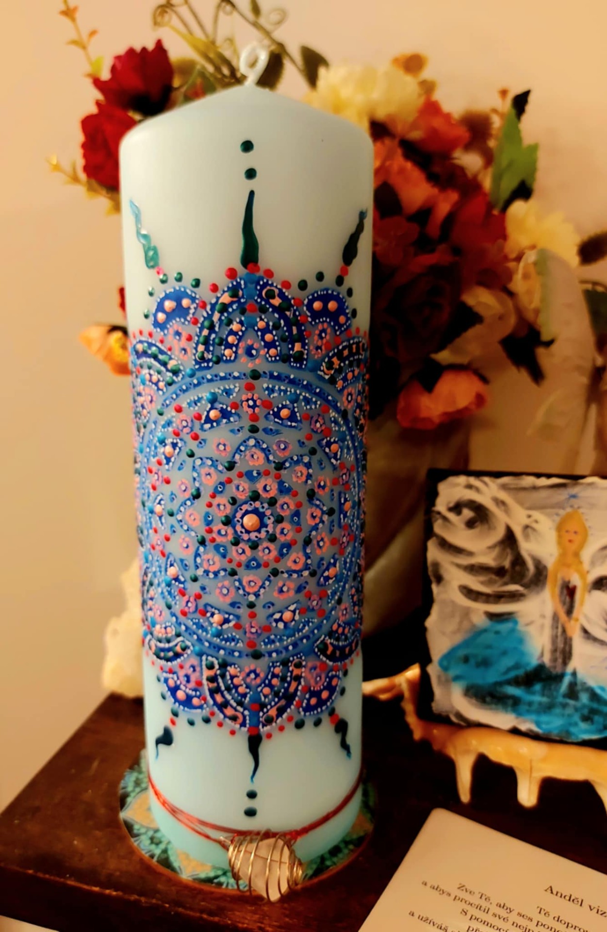 Parafín, 940 g, 22/8 cm, malba na svíčku akryl a tekuté perly, minerál, podložka břidlice , akryl.