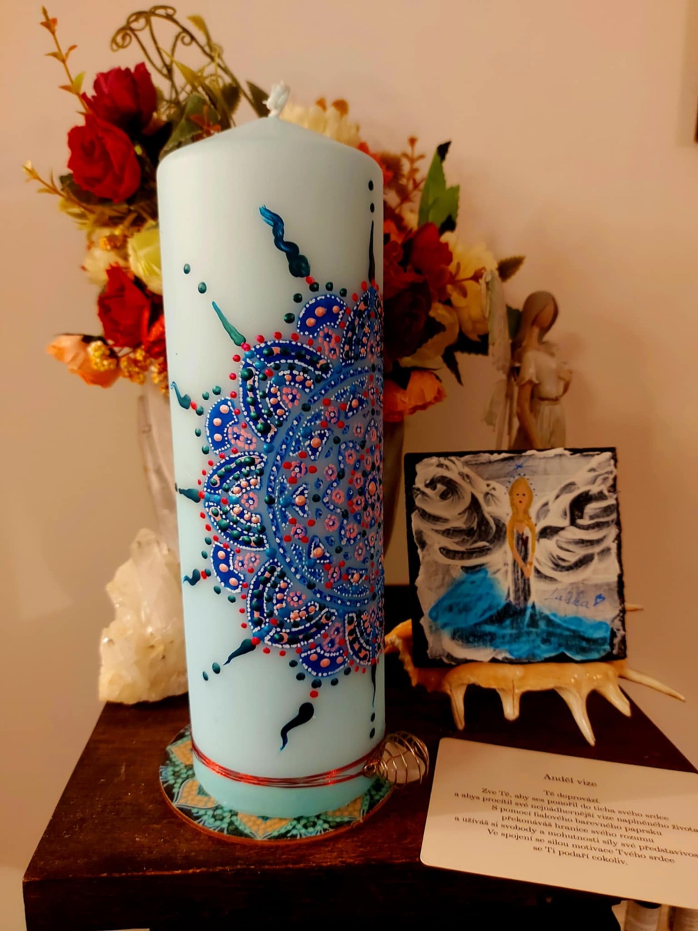- Tato svíčka je rezonanční objekt, laděna na vnímavost, přítomnost a vědomý kontakt. Vznikla jako otevřené pole, které se propojuje s vědomím člověka, jenž s ní pracuje.