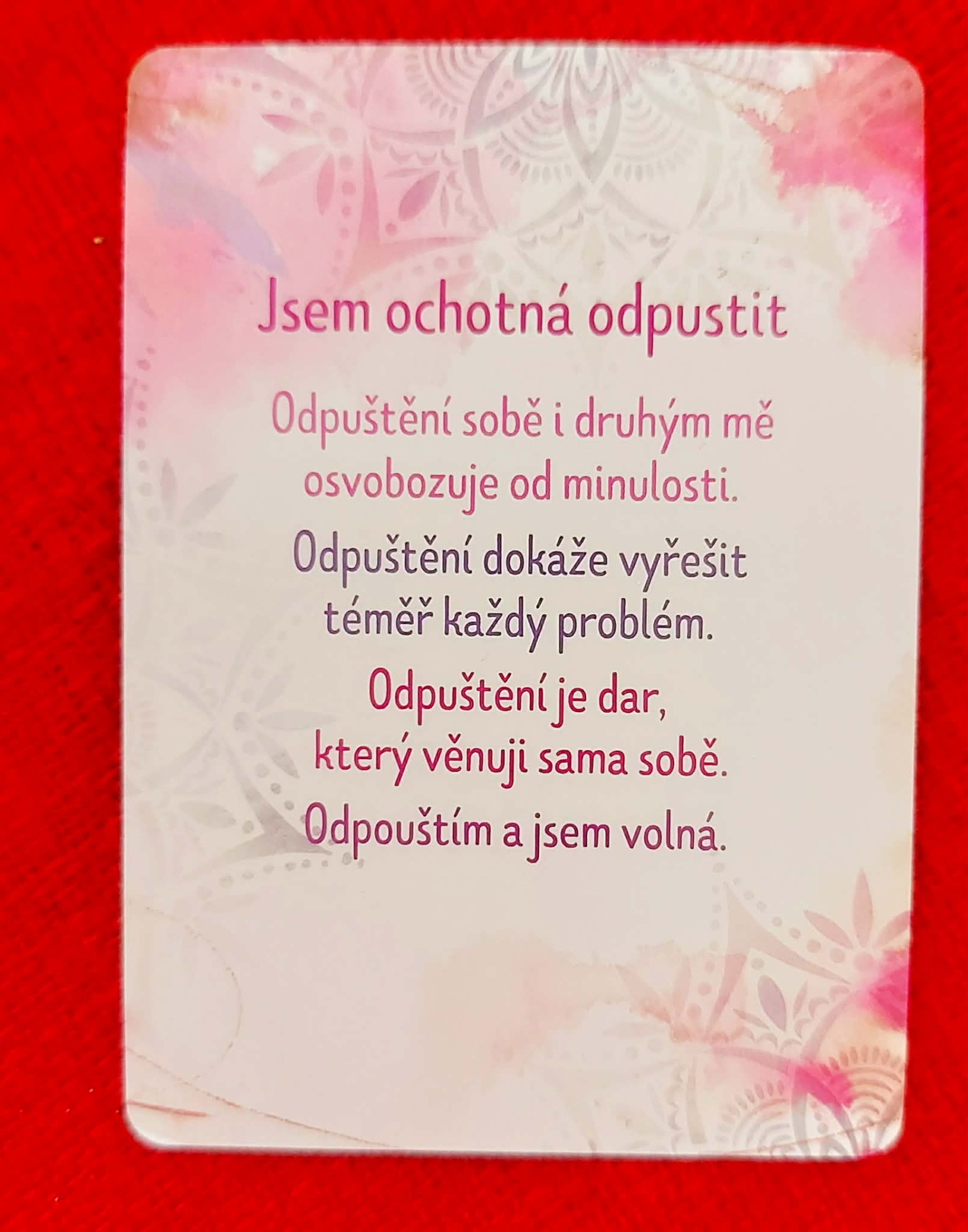 AFIRMACE - "Dovoluji si uvolnit minulost a otevřít své srdce klidu. Odpouštím sobě i druhým. Jsem svobodná. Jsem v harmonii. Jsem v míru."