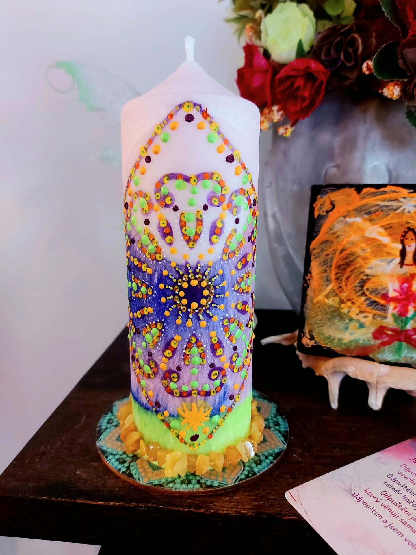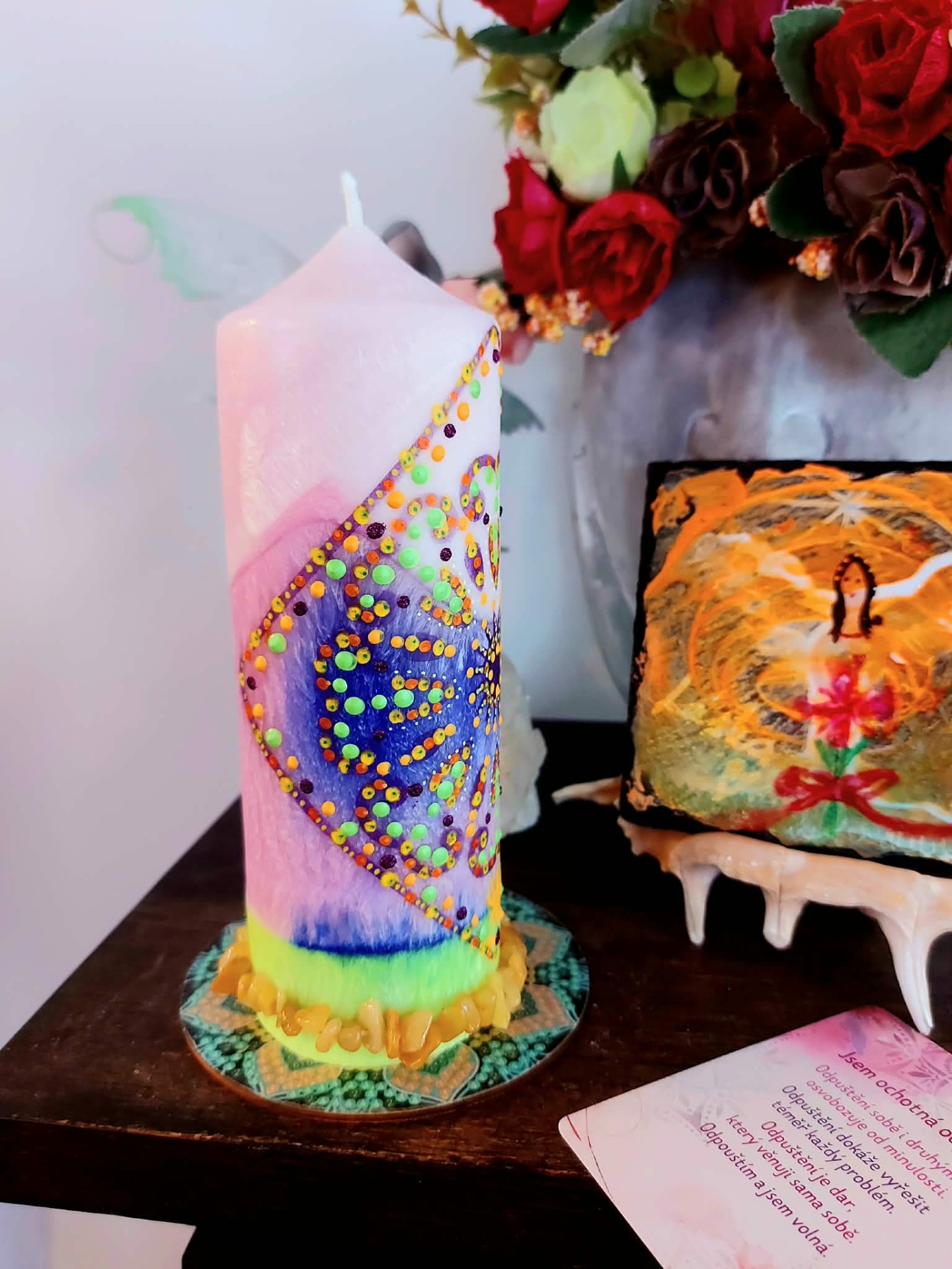 Prána odpuštění – Ho'oponopono svíčka očisty, odpuštění a harmonie - Tato svíčka je světlem návratu k vnitřnímu míru. Otevírá prostor, kde se staré rány mohou rozpustit v pochopení a laskavosti. Je průvodkyní procesem odpuštění , jako vědomé uvolnění pout, která již neslouží. Pomáhá - uvolnit bolest uloženou v srdci – rozpustit vinu, křivdu i vnitřní napětí – obnovit harmonii v sobě i ve vztazích. Je to tiché připomenutí, že svoboda začíná uvnitř.