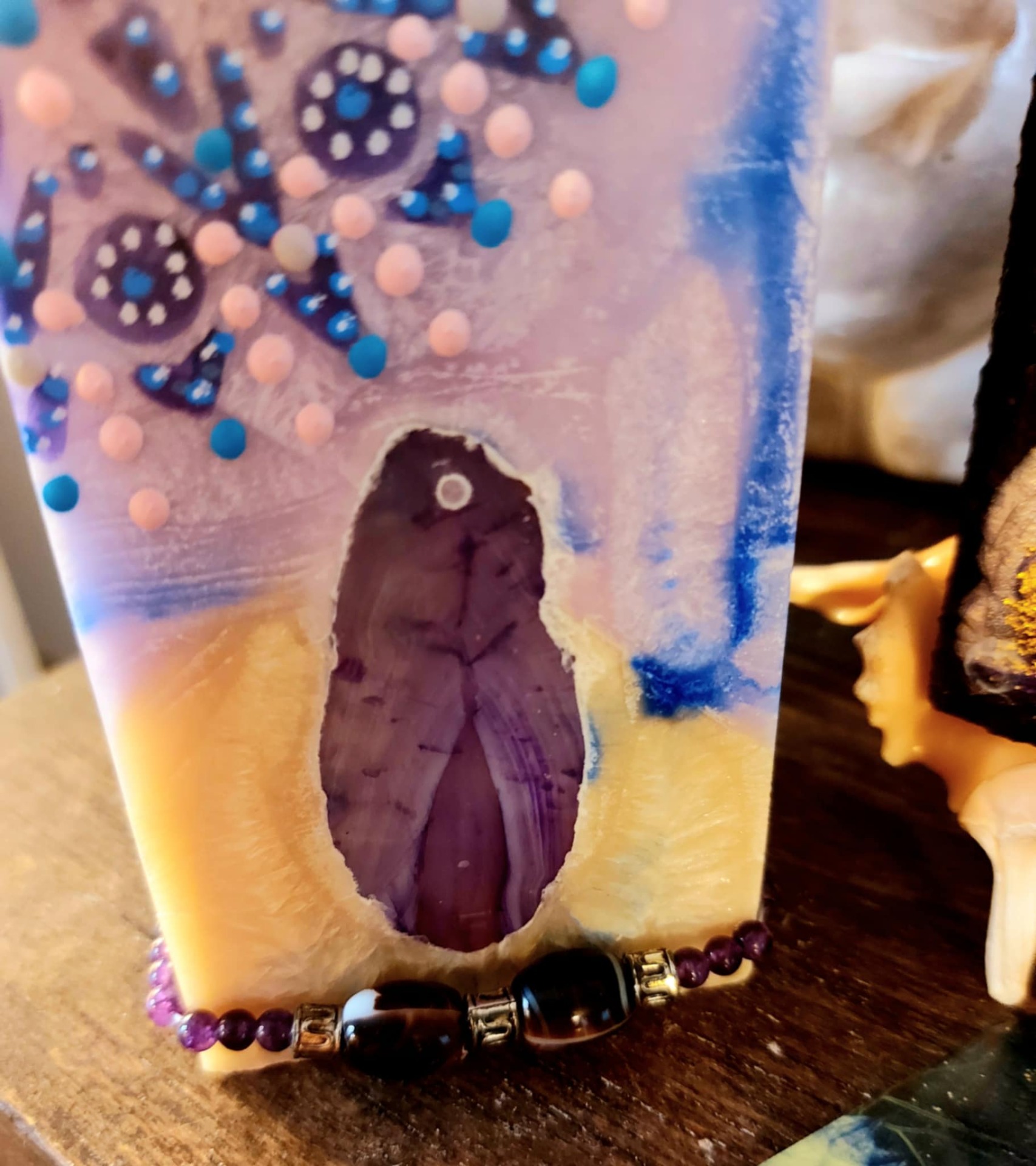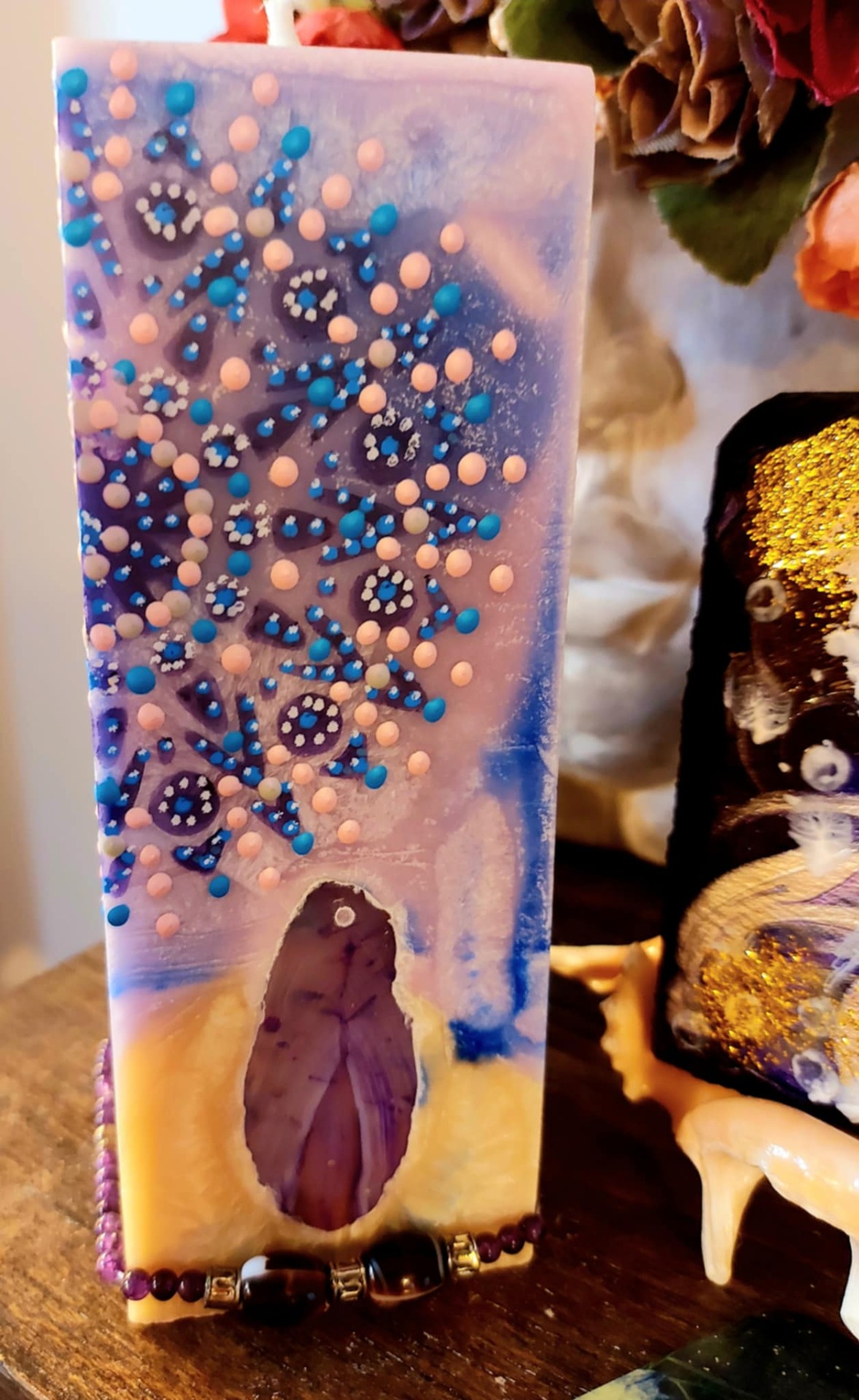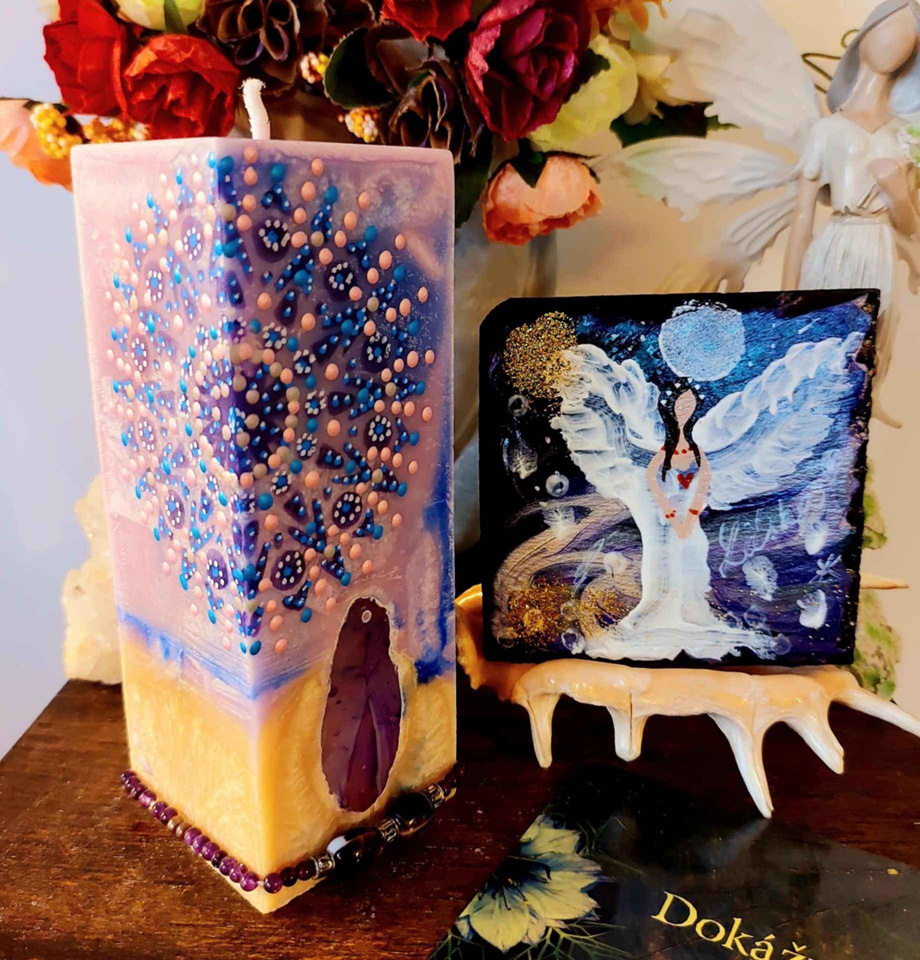 Tácha Nových začátků Nové začátky přicházejí s energií posunu životního cyklu. Ať toužíte po změně práce, nových návycích, proměně vztahů, postojů nebo financí, klíčem je vždy vnitřní impuls. Právě ten roztočí vesmírnou spirálu růstu, evoluce, plodnosti a životní síly. Odpoutání se od minulosti, zbavení se strachů a bolesti ze ztrát, otevření se novým možnostem – a především Láska jako základní esence bytí. V kruhu čarokrásných sugescí se otevírá prostor zázraků. Aktivace vnitřního zdroje světla přináší teplo, jas a bezpečí. Přivolejte v duchu stavy zájmu, přátelství, sympatií a lásky. Žádné dveře již nebudou uzavřeny, tíha se rozpouští. Přichází klid, sebejistota a lehkost. Vše je propojeno, vše je možné. Afirmace:"Jsem zářivé světlo a pramen zázraků. Přivolávám stavy štěstí, které jsem již zažil/a – a ony nyní znovu ožívají a posilují magickou sílu mého bytí. Skutečnost se podřizuje mému duchu. Každý den, každou hodinu, každou minutu jsem v nekonečné náklonnosti hojnosti darů. Životem kráčím lehkým krokem a každá nová příležitost mi dává možnost volby – zda s důvěrou riskovat úspěch, nebo zůstat v stagnaci. Odevzdávám strachy vesmírným silám a s nadšením i zvědavostí přijímám nové výzvy. Mám sílu, odvahu a vůli měnit svůj život." Meditace ke svíčce – NOVÝ ZAČÁTEK Najdi si tiché místo. Zapal svou svíčku. Sleduj, jak se její plamen rodí – malý, jemný, ale rozhodný. Přesně tak začíná každý nový krok. Nadechni se. S výdechem nech tělo klesnout do přítomnosti. Cítíš, jak se pod tebou rozprostírá pevná zem… nese tě. Uklidňuje tě. Tvůj dech se stává mostem mezi tím, co znáš, a tím, co se právě rodí. Vnímej život plamene. Jako by se jeho světlo dotýkalo tvé hrudi a tiše v ní rozsvěcovalo malou jiskru. Jiskru zítřka. Jiskru nové možnosti. Teď si představ, že plamen svíčky jemně dýchá s tebou. Při nádechu světlo narůstá. Při výdechu se zjemňuje. Tvoje mysl se ladí do rytmu nového začátku. A v tom měkkém světle se otevírá jedna jediná věta: „Dnes začínám poprvé a jinak.“ Nech ji projít celým tělem. Nech ji rozeznít tvé buňky, jako bys uvnitř rozsvěcovala nový program. Program lehkosti. Program kreativity. Program odvahy. Vidíš před sebou cestu .Je měkká jako čerstvě spadaný prach světla. A ty po ní můžeš udělat první krok… právě teď. Nadechni se do oblasti srdce . Při výdechu dovol této nové energii rozšířit se kolem tebe jako jemná aura. Jako by plamen svíčky kreslil kolem tvé bytosti nový tvar – tvar začátku. Až budeš připravená, polož si ruku na srdce a v tichosti zopakuj: „Cítím nadšení a vítám nový začátek.“ Nech světlo svíčky, aby tuto větu vtisklo do tvého dne. Do tvých myšlenek, rozhodnutí i drobných kroků. Ať se dnešek stane okamžikem, kdy se tvůj vnitřní kompas naladí na nový způsob – lehčí, jasnější, přirozenější. Zhluboka se nadechni… A s výdechem otevři oči. Plamen nese tvůj nový začátek dál. A ty jdeš s ním. Achát udržuje stabilitu všude tam, kam jej umístíte a stejně tak i v naší mysli. Tento kámen je vhodný snad pro každého a svou příjemnou, harmonizující energií si získá srdce každého. Posílí sebedůvěru i vnitřní sílu. Má velmi široké využití zejména v psychické oblasti. S achátem se už nikdy nebudete cítit méněcenní. Achát vás podpoří když ve svém životě potřebujete stabilitu a uzemnění. 490g, palmový vosk, 6,5/6,5/16 cm, vonná esence divoké květy, náramek posvátného záměru, podložka břidlice, akryl.Pro pro očistný proces, aby mohl působit jsou zakomponovány Bachovy esence 4, 10,13,29,36.Náramek, pokud je součástí doporučuji nosit po celou dobu procesu.