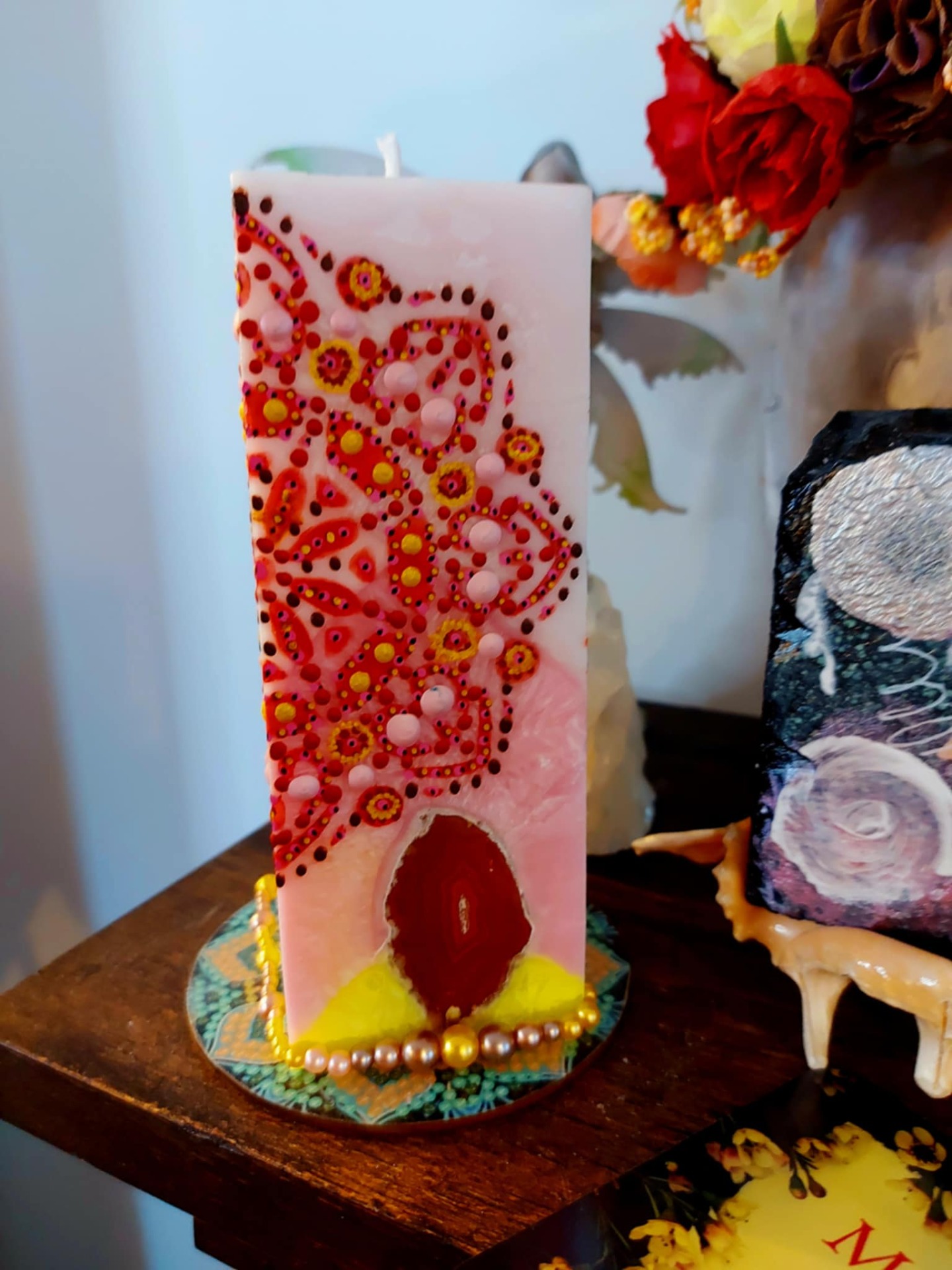 Tato svíce je jemným, ale silným nástrojem návratu k sobě. Snoubí se v ní něžná stabilita achátu, spirituální hloubka mandaly a harmonizující vibrace Bachových květových esencí. Společně vytvářejí léčivou symfonii rovnováhy, která otevírá srdce přesně tam, kde je to v daný okamžik potřeba. Když dovolíš lásce vstoupit, začneš cítit, že vše je v dokonalém pořádku. Tato svíce vytváří bezpečný prostor pro klid, uzdravení a hluboké sebepřijetí. Pomáhá uvolnit staré bloky, změkčit vnitřní kritiku a sladit mysl s přáními a sny tvého srdce, otevírá srdce na všech úrovních, podporuje sebelásku a přijetí vlastní jedinečnosti, léčí citová zranění a zklamání, přináší úlevu v obdobích krizí a traumat, obnovuje důvěru a harmonii ve vztazích, posiluje empatii, citlivost a schopnost hlubokého propojení, přitahuje do života lásku, nové příležitosti a "správné" lidi