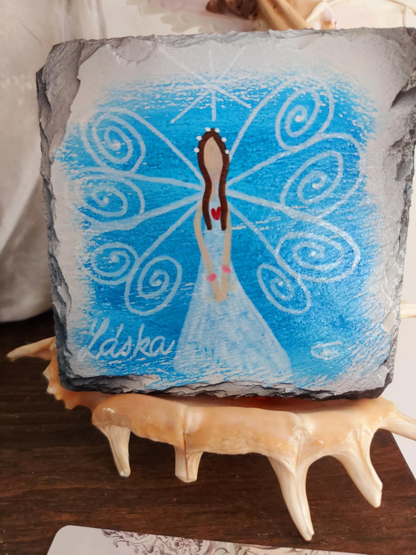Minerál vložený do spodu svíčky projasňuje mysl, zvyšuje sebevědomí, přináší novou energií, zklidňuje. Podporuje trpělivost, moudrost a dokonalost. Pomáhá se sebezdokonalováním, samostatností, vytrvalostí. Zesiluje energii svíčky, Uvolňuje ji a reguluje, aby bylo dosaženo harmonie Palmový krystalický vosk 370 g, 16/6 cm, malba na svíčku akryl a tekuté perly. Podložka břidlice a akryl, Minerál ve svíčce,, esence divokých květů, Bachovy esence. Náramek posvátného záměru, pokud je součástí, doporučuji nosit po celou dobu procesu.