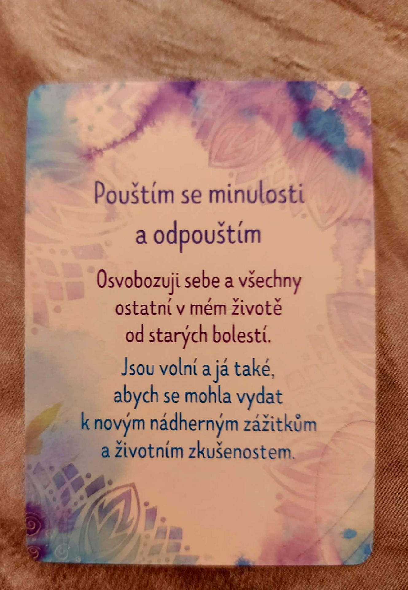 Afirmace: Zákon přitažlivosti vnáší do mého života jen to dobré. Jsem připravena uzdravit své srdce. Jsem ochotna odpustit. Právě teď přichází jemné a láskyplné změny do mého života.